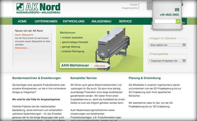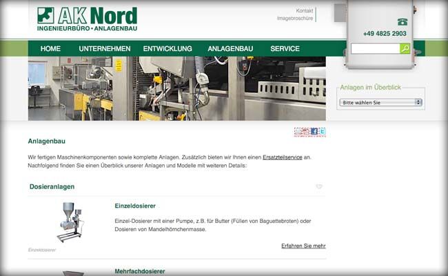 Planung, Entwicklung, Programmierung der AK Nord GmbH Unternehmenswebsite auf Basis des Open-Source Redaktionssystems Typolight/Contao.